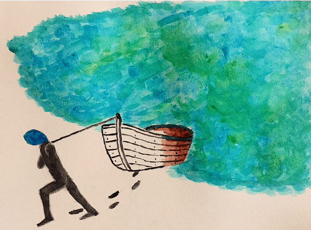 « Les bateaux magnétiques », Aquarelle et feutre sur papier, 21 x 29,5 cm, 2019