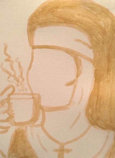 « Coffee, A nun », Café sur papier, 28,2 x 21 cm, 2018