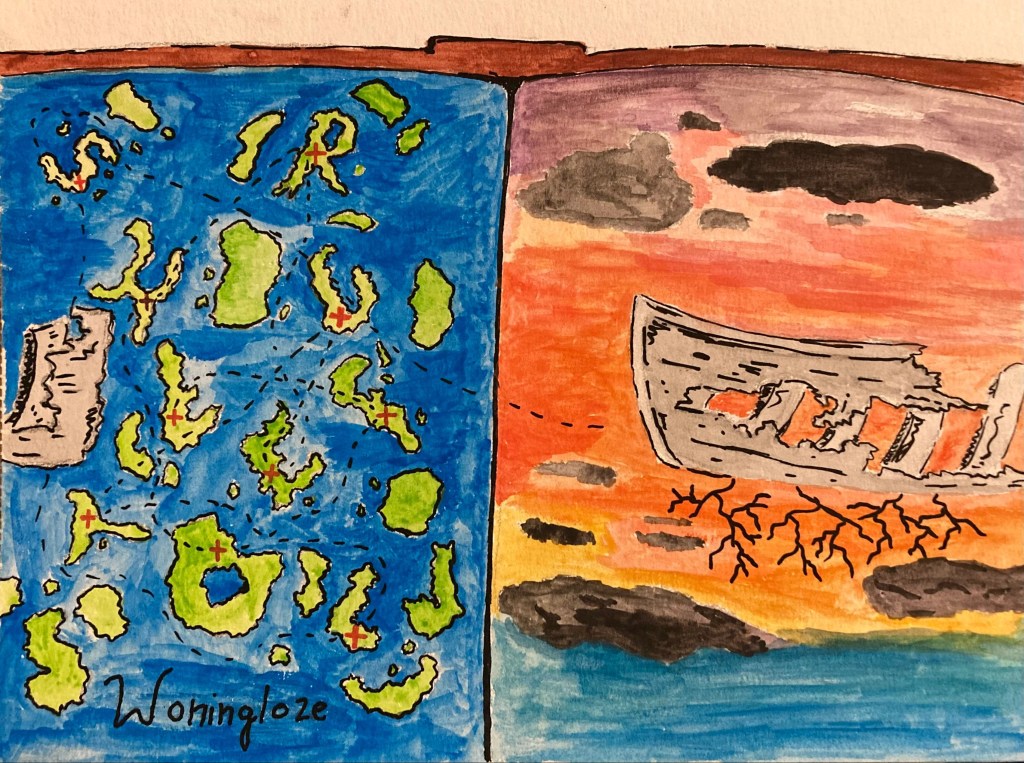 « El holandés errante », Aquarelle et feutre sur papier 21 x 28 cm, 2018