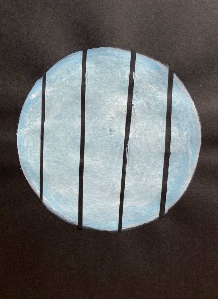 « Prisión bajo la luna », Acrylique et papiers collés sur papier, 19,7 x 14,7 cm, 2020