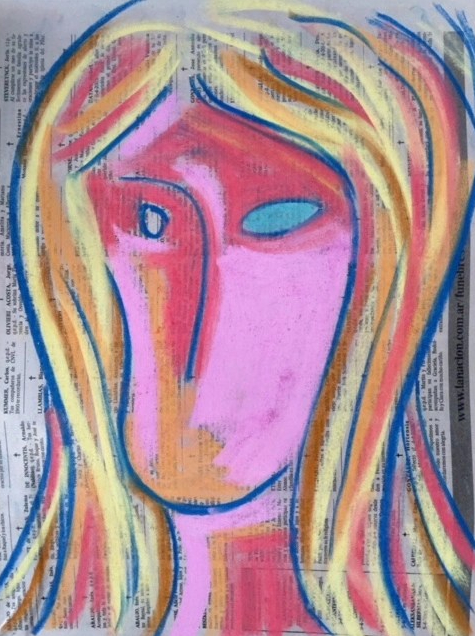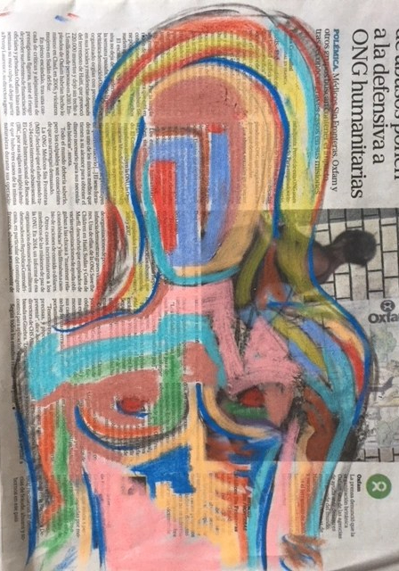 « Fragmientos », Acrylique, feutre et collage sur papier, 19,7 x 14,7 cm, 2020