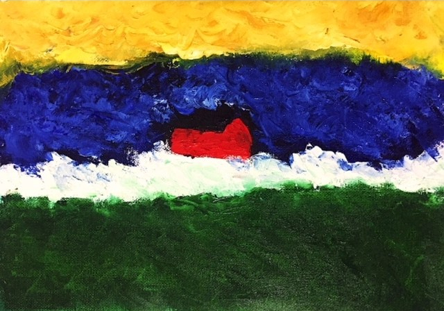 « La maison rouge », Huile sur toile, 29,5 x 20,5 cm, 2019