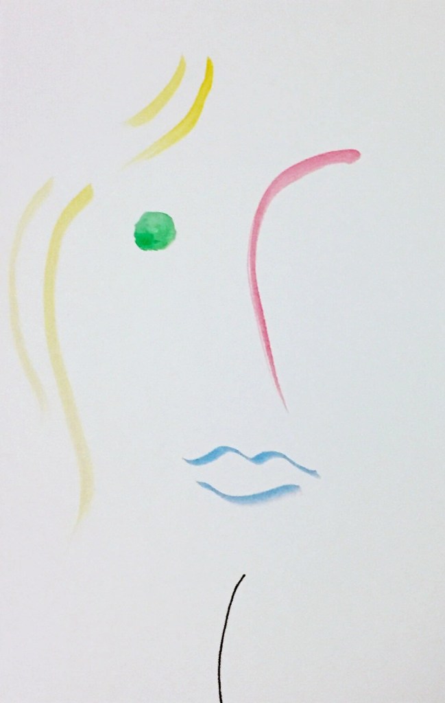 « Autoportrait », Aquarelle et feutre sur papier, 10,5 x 29,5 cm, 2020