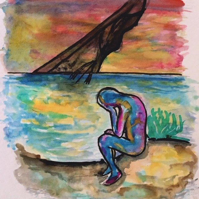« Toska », Aquarelle sur papier, 29,5 x 21 cm, 2018
