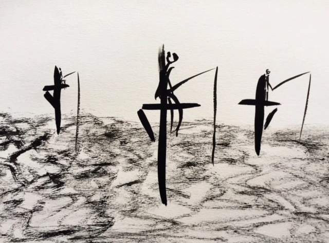 « Les pêcheurs de Sri Lanka », Encre de chine sur papier, 21 x 29,5 cm, 2018